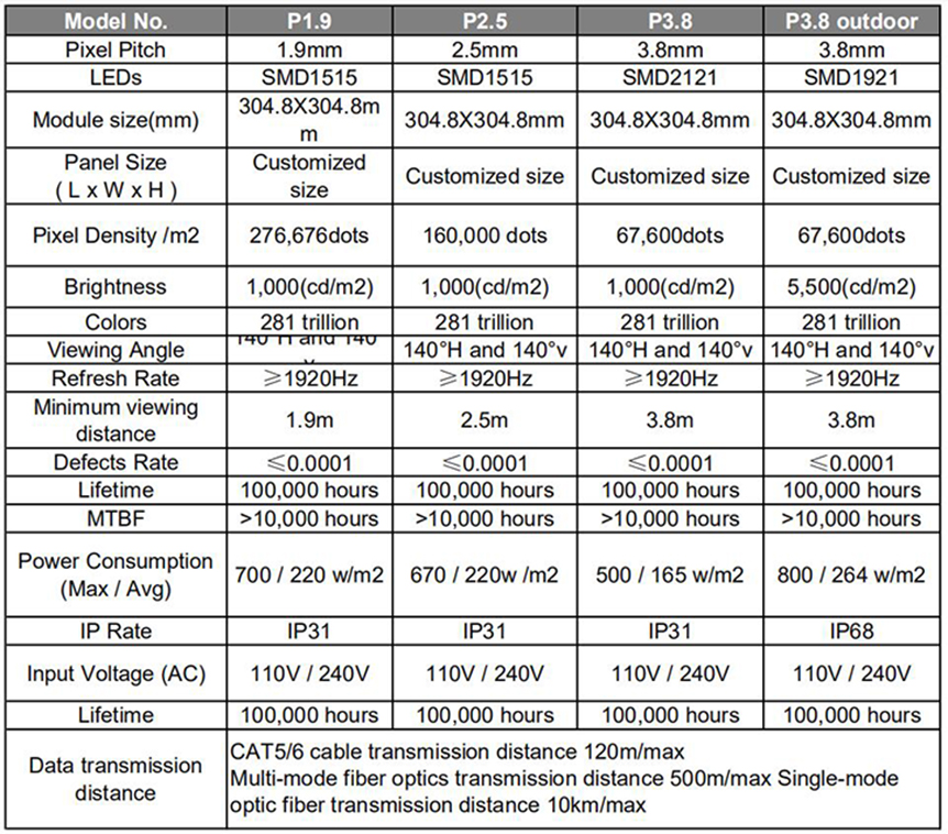 Pixel Pitch:P1.9 / P2.5 / P3.8